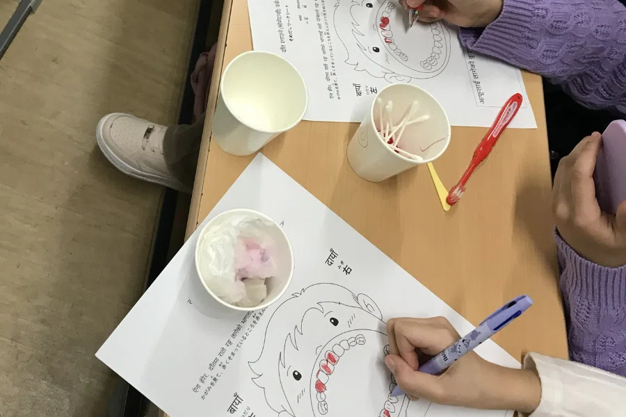 2024年8月に女性普及員との活動の1つとして、中野区のネパール人が100世帯以上住んでいる集合住宅の住民を対象に、中野区の歯科衛生士さんや保健師さんに協力してもらい健康セミナーを行いました。その時、歯磨きの必要性や磨き方などを教えてもらい、その評判がとても良かったことから、自分たちの働く学校の子どもたちにも伝えたいと、女性普及員から話があり、今回の開催に至りました。