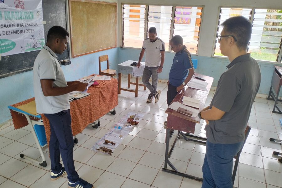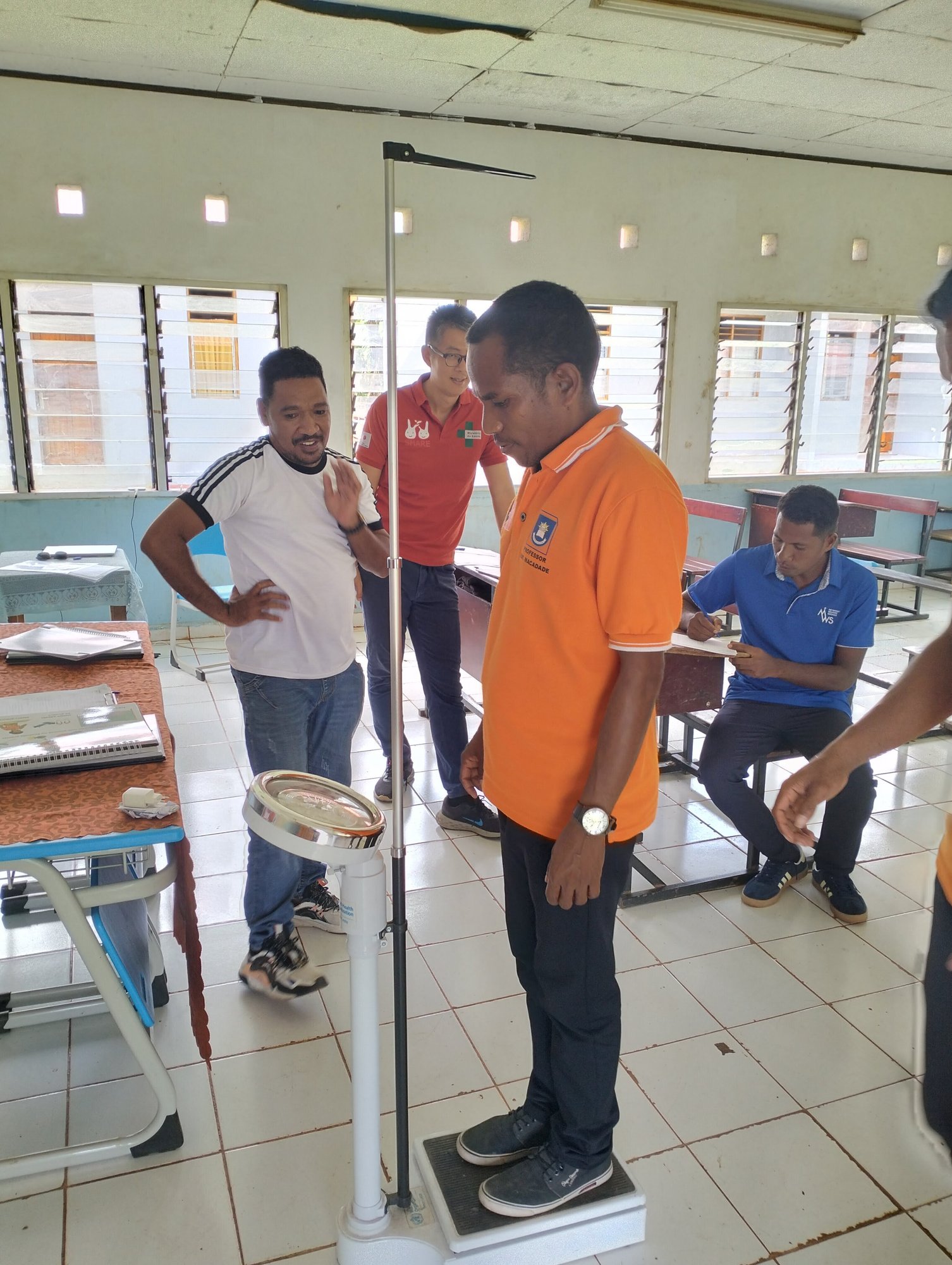 学校の環境を整える「衛生」トピックに加えて、子どもたちの体そのものの成長を正しく見守ることも、学校保健の重要な柱です。そこで今回の研修では、栄養状態を客観的に把握するための新たなステップとして、BMI(体格指数)についても伝えました。実は東ティモールでは、学校での身体測定の規定はあっても、先生たちが体重計や身長測定器を触ったことがなく、器材はあるのに放置…という状況が起きています。そこで、身長・体重の測り方、そして栄養状態を評価するためのBMIの計算方法を伝えました。これで、先生方は学校現場で栄養不良の兆候に気づき、より早く対処できるようになることが期待できます。