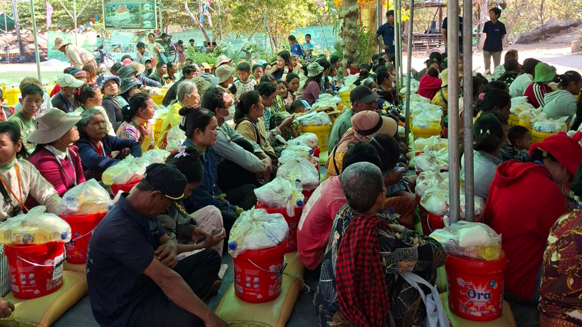 2026年2月上旬には10万人以下まで減少しましが、その一方で、シェアが活動するプレアビヒア州では、現在も約3,000世帯(1万人)がパゴダや親族宅などに身を寄せ、食料や衛生用品が不足した不安定な環境の中での生活を続けています。